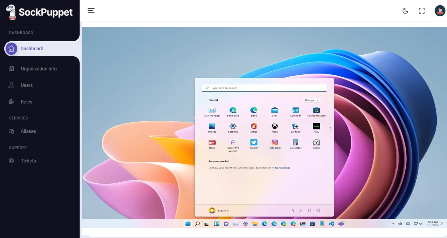 Each instance of Alias includes a fully-featured virtual desktop, providing a powerful, secure, and customizable environment tailored to your investigative needs. These virtual desktops are designed to support the diverse requirements of cybersecurity analysts, ensuring that your digital personas are underpinned by robust and resilient infrastructure.